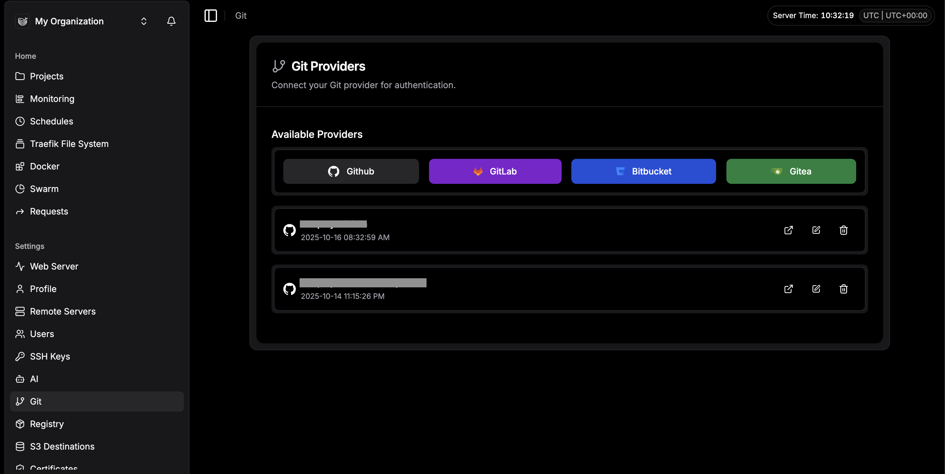 First, go to the Git tab in the sidebar and connect your provider (GitHub/GitLab). It takes two clicks.